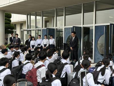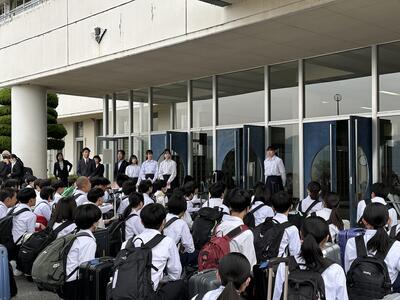 朝早くから見送りに来ていただいた方々に、挨拶をしていよいよ修学旅行スタートです!