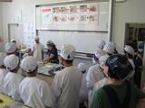 「兵庫の水産と魚について知ろう」ということで、講師の先生を招き、1年生を対象にはじめ講演会をしていただきました。魚を食べることで骨が強くなったり、目が良くなったりする話を聞きました。また、兵庫県でとれる魚を紹介していただきました。あわせて、魚の触れ合い体験ということで、ヒラメやミミダコ、カワハギなどを直接触りました。その後、調理実習を行い、アジを3枚に下ろし、焼いて調理をしました。美味しくいただくことができました。