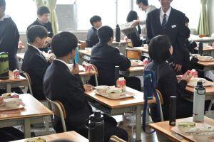 1年生にとっては、中学校生活「初」の給食。少し緊張した面持ちでしたが、お祝いのお赤飯をみんなで囲み、新学期の始まりを晴れやかに祝うことができました。