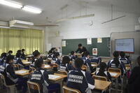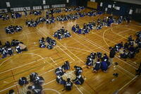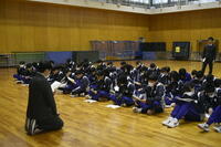 明日の神戸校外学習に向けて、しおりの読み合わせや整列の隊形の確認をしました。